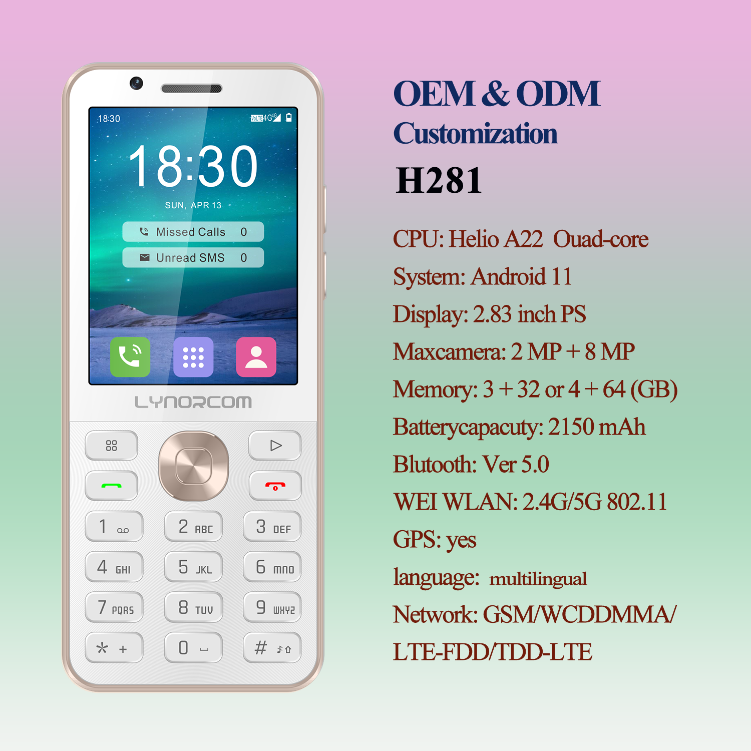 - Network: GSM / WCDMA / LTE-FDD / TDD-LTE